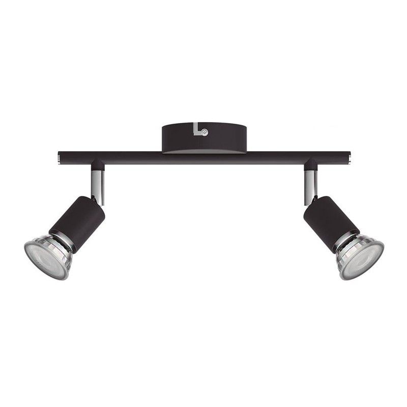 Structure en métal noir. Têtes réglables. Convient aux lampes avec douille GU-10 max 50 W. (Lampes non incluses). 2 spots. 32,4x8xh.13 cm.