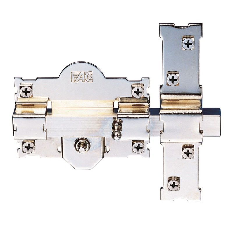 Clé extérieure et bouton intérieur. Barre en acier calibrée de 18 mm. Plaque en acier de 2 mm. Gâche en acier de 3 mm. Cylindre rond.