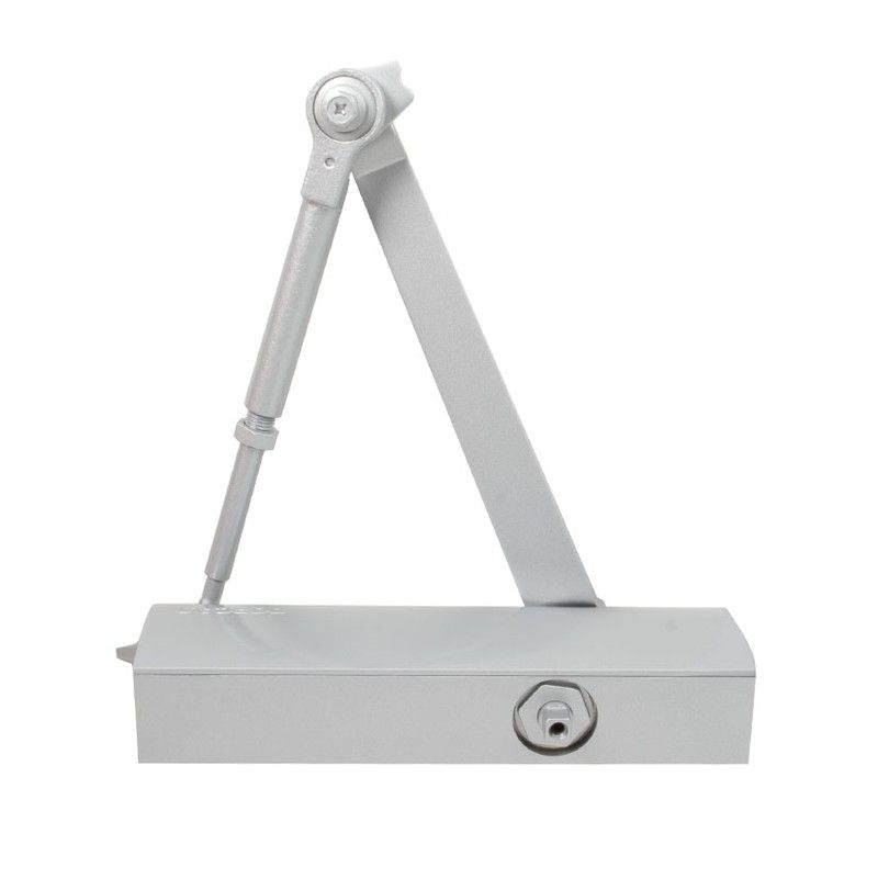 Force de fermeture et vitesses réglables. Force EN 2-5. Portes de 25 à 100 kg. Portes de largeur de 85 à 125 cm. Portes coupe-feu certifiées CE. Corps en aluminium et bras en acier.