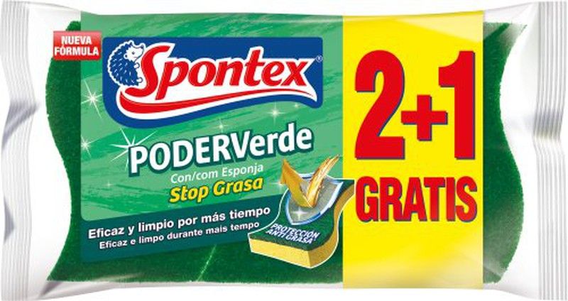 Tampon à récurer vert Spontex avec éponge (2+1)