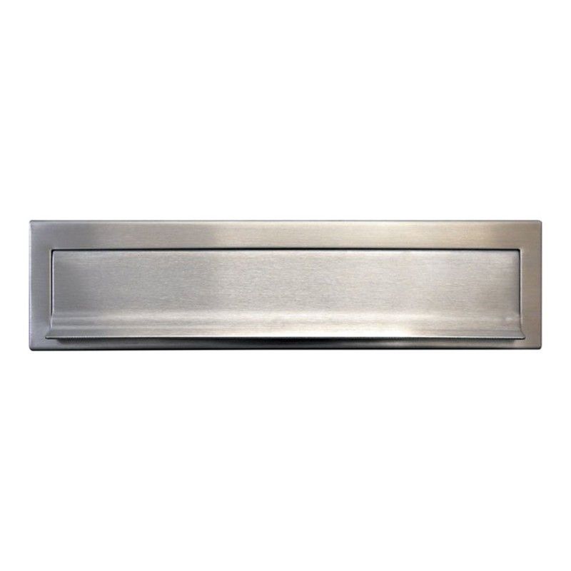 Porte-lettres BTV. Profilé en aluminium peint. 282x58mm. Entrée de lettre 250x27 mm. Comprend un autocollant décoratif. Acier inoxydable copain.