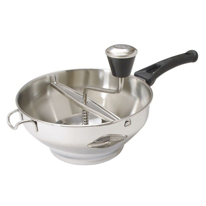 Moulin à purées en acier inoxydable mat 20 cm.Manche en acier inoxydable à disque fixe. disque fixe.