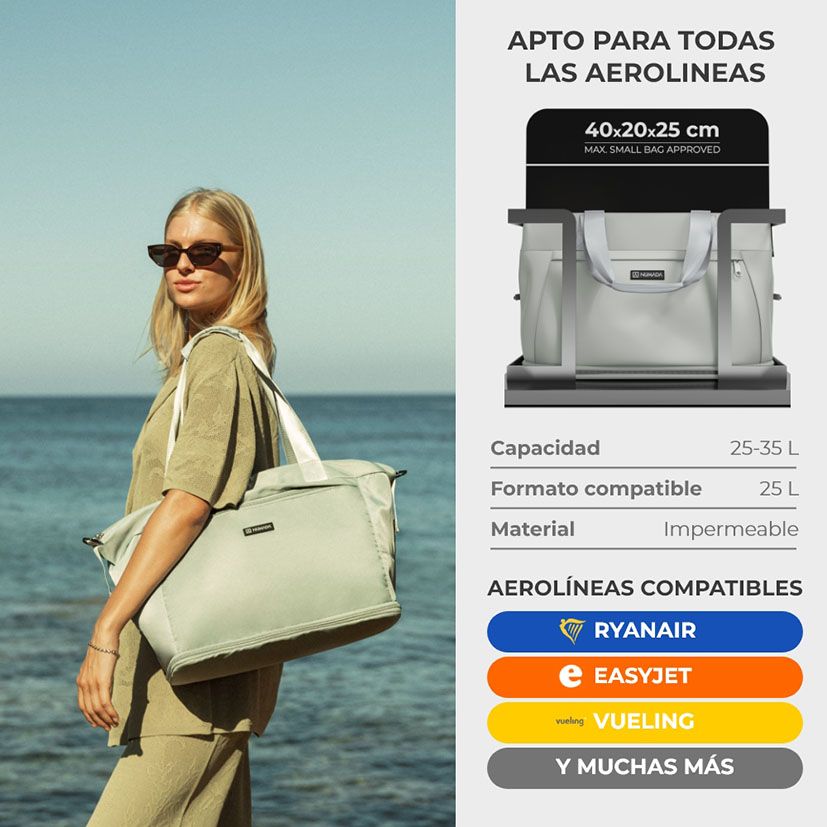 Adapté à toutes les compagnies aériennes en format 20 litres. Extensible de 25 à 35 litres. Compartiment interne pour ordinateur portable 15 pouces + poche à chaussures supplémentaire + 10 litres. Résistant à l'eau et à l'abrasion. Deux poignées et une bandoulière. Sangle pour bagage.