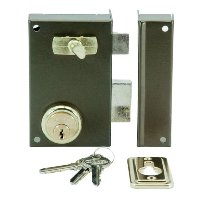 Cylindre et levier actionnés avec clé des deux côtés et poignée à l'intérieur. Fer émaillé haute résistance. Comprend 3 clés.
