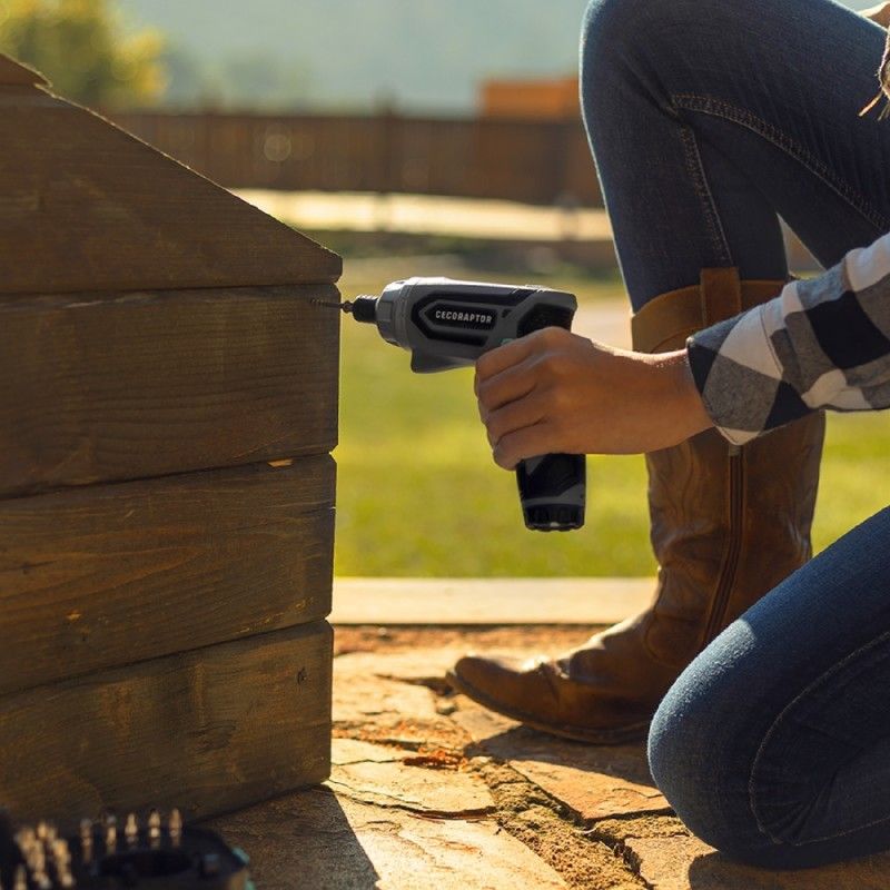 Plus d'informationsVisseuse sans fil dotée d'une batterie lithium-ion 4 V, 1500 mAh rechargeable par USB et d'une autonomie allant jusqu'à 60 minutes. Redécouvrez la puissance de vos mains. Avec un couple maximum de 4 Nm et 6+1 positions, avec ce tournevis vous pourrez concrétiser vos projets de bricolage les plus précis à la maison. Conception ergonomique et compacte. La poignée ergonomique offre une prise en main facile et confortable, très agréable au toucher et confortable à utiliser. Avec une vitesse maximale de 200 tr/min, il offre une grande puissance et polyvalence, s'adaptant aux vis de toutes sortes et dans tout type de matériau. Avec sa tête rotative à deux positions de travail, à 90º et horizontalement, il permet de travailler avec des vis rapprochées dans les coins ou. dans des endroits étroits. Lampe de travail. Avec la lumière LED intégrée pour vous concentrer sur la zone de travail, ainsi qu'une lampe de poche supplémentaire à la base du manche, vous pouvez utiliser votre tournevis dans des zones mal éclairées ou éclairer de près la zone de travail pour obtenir des résultats d'une grande précision.Comprend un mandrin : Câble hexagonal et USB 1/4" (6,35 mm).